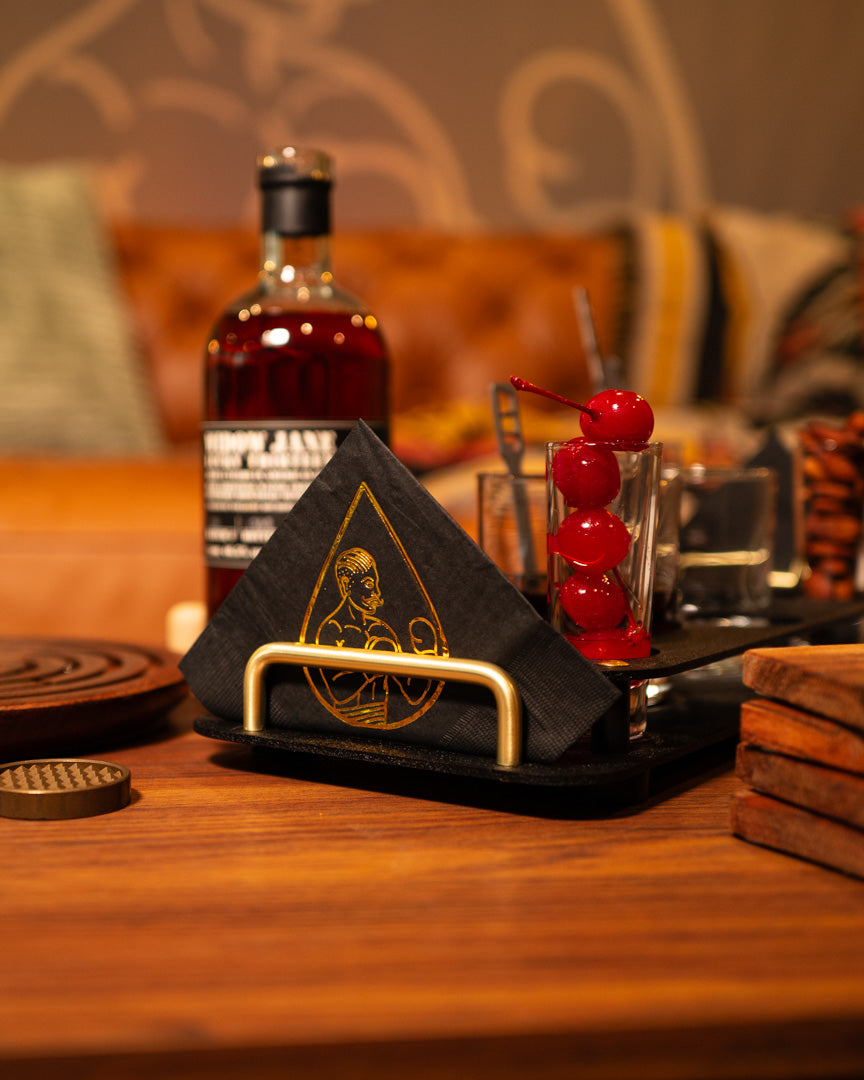 The aesthetic handles on each side double as a space to hold napkins when the tray is set up for a great presentation. Every Beverage Pro comes with four custom napkins to get you started!