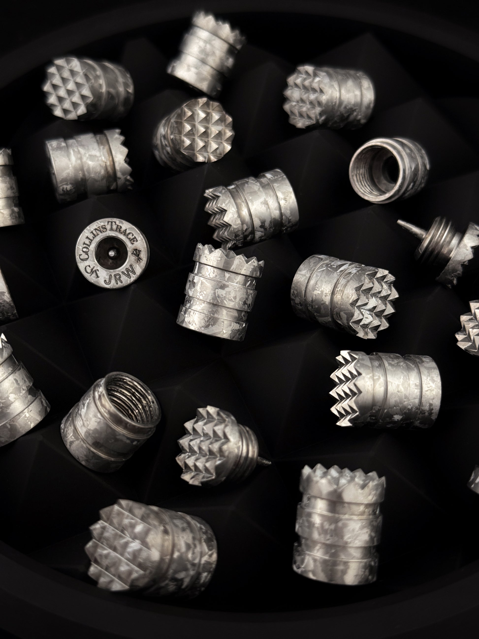 Designed by Collins Trace, The End is a bead that solves one of the most annoying parts of our EDC hobby, tying paracord knots. Featuring a two piece design that screws together, The End accepts two burnt ends of a paracord loop and forces them against internal threads to cap off a lanyard. No knot is necessary but the bead stays on strong! This system lets you add, remove and alternate lanyard beads on your knives and tools fast and easy. In collaboration with JRW these beads have been milled with Curator pyramids.