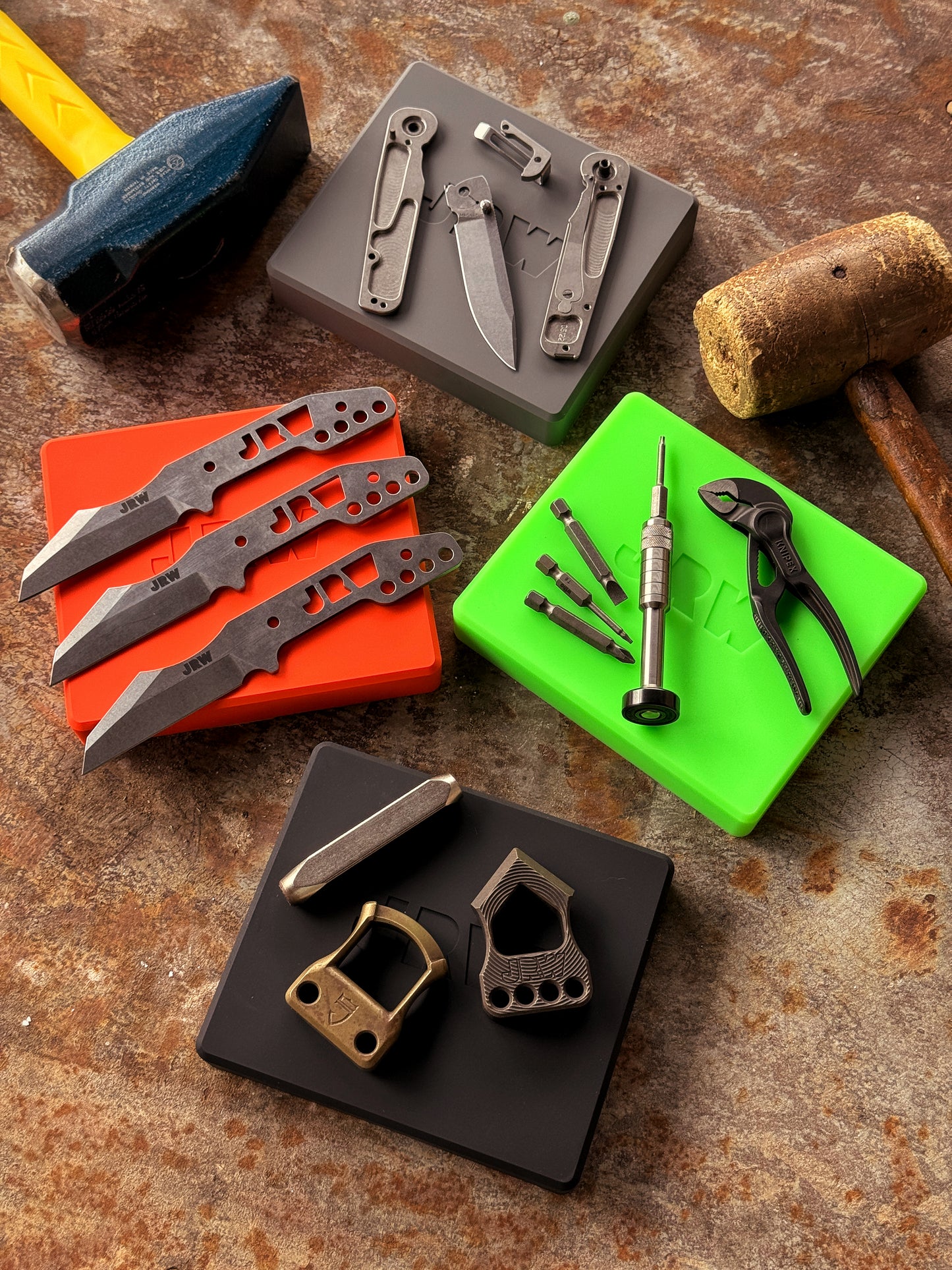 Thicker than all other Flex Trays, the Block serves two distinct purposes. On its own it makes a perfect hammer block for pounding in pins and stamping logos into metal goods. Paired with a Pro Series tray the Block elevates your project above the rim of the tray giving you better access and allowing you to work on larger items that would not normally fit inside the tray.